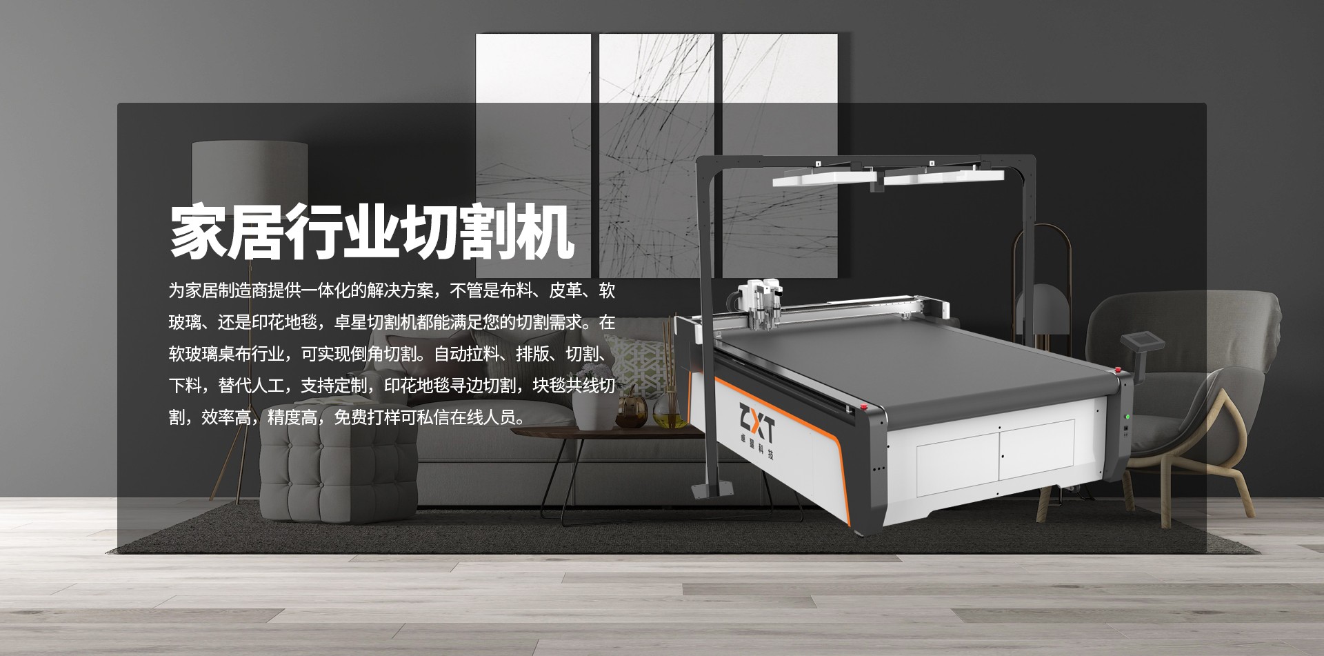采用可更換工具模式,工具頭非固定焊接集成,可按實際工作需要以及業(yè)務范圍擴展情況方便的更換、增配不同功能的工具頭;適應家居行業(yè)材料多樣化的切割要求;為應對客戶實際使用中電磁環(huán)境復雜,特別配置抗干擾操作屏,工作時不受周邊電子環(huán)境影響,不花屏;